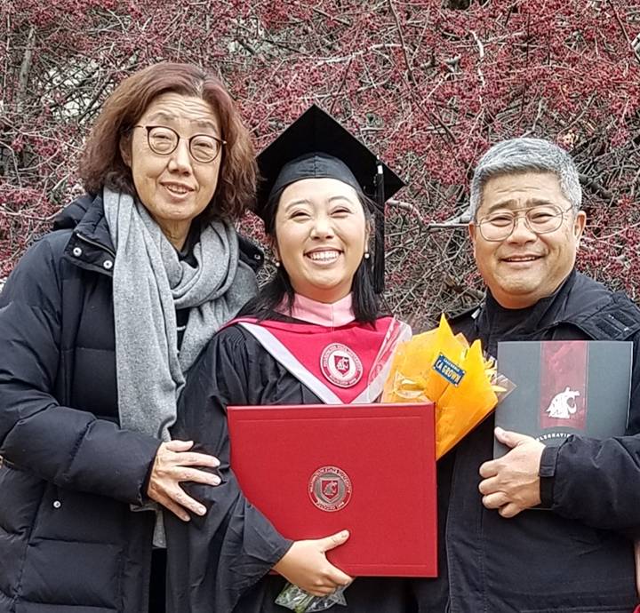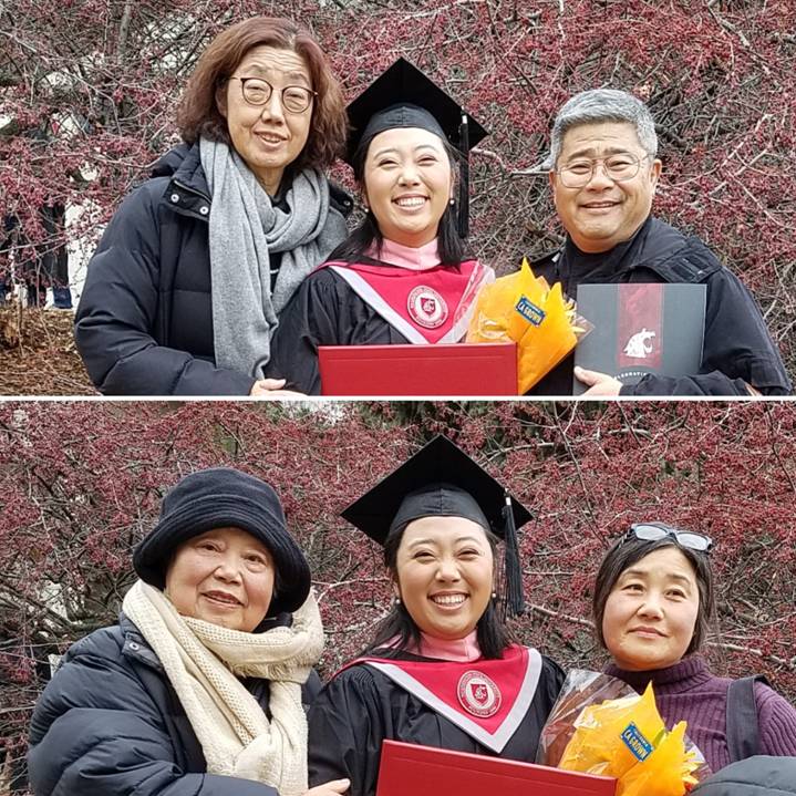 셋중에 막내 해피가 제일 먼저 대학원을 졸업하게 되었다. 참석하기 위해 아내는 일주일 전에 있는 리사이틀을 돕기위해 1주일 먼저 와싱톤에 갔다. 나는 비행기 타는 것이 싫어 기차로 가는데 어머니까지 같이 동행하게 되었다. 덕분에 눈 구경도 실컷하고…