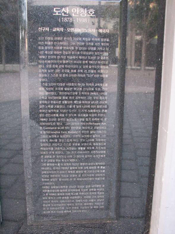 memorial commemoration his life and work stands in the center of Gangnam District in Seoul, Riverside¡¯s distinguished sister city.