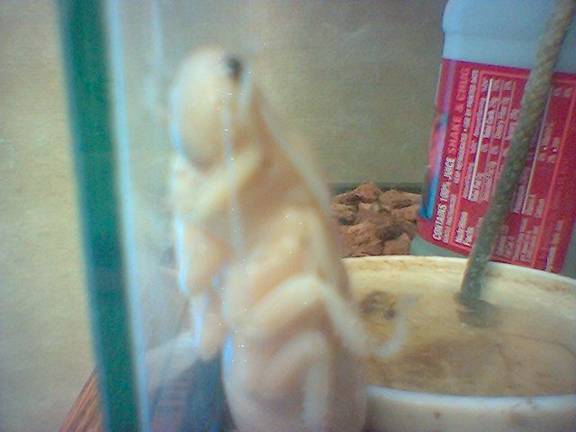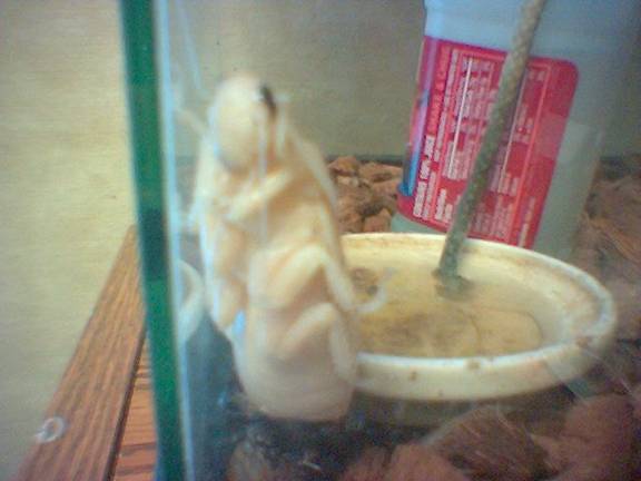 Within 30 minutes of these pictures being taken, the cockroach started to take on a brown color.